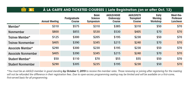 AASLD 2019 美国肝病年会-注册费: